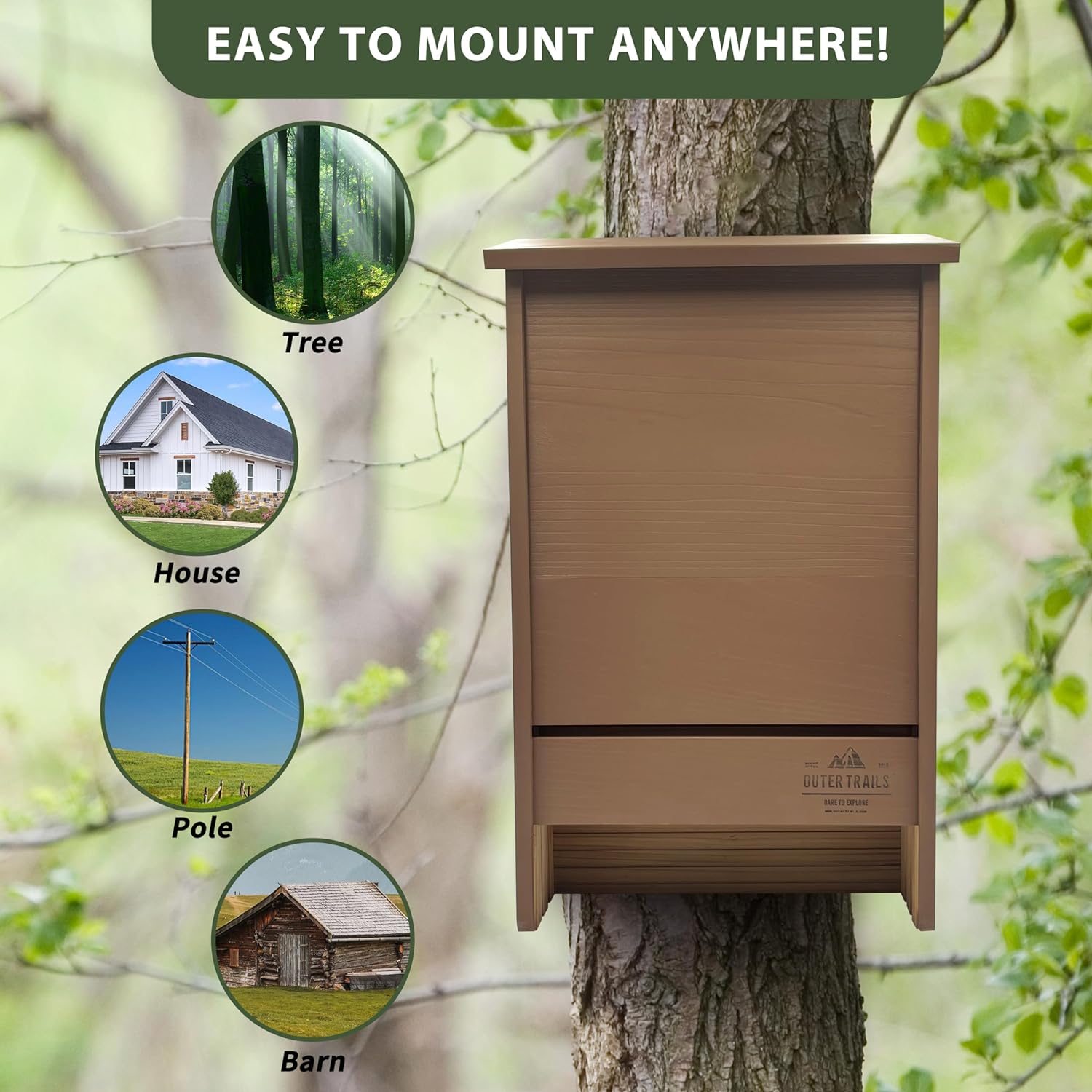 • With OuterTrails­™ bat houses you can offer your bat guests a secure, dry and comfortable place to roost and sleep.