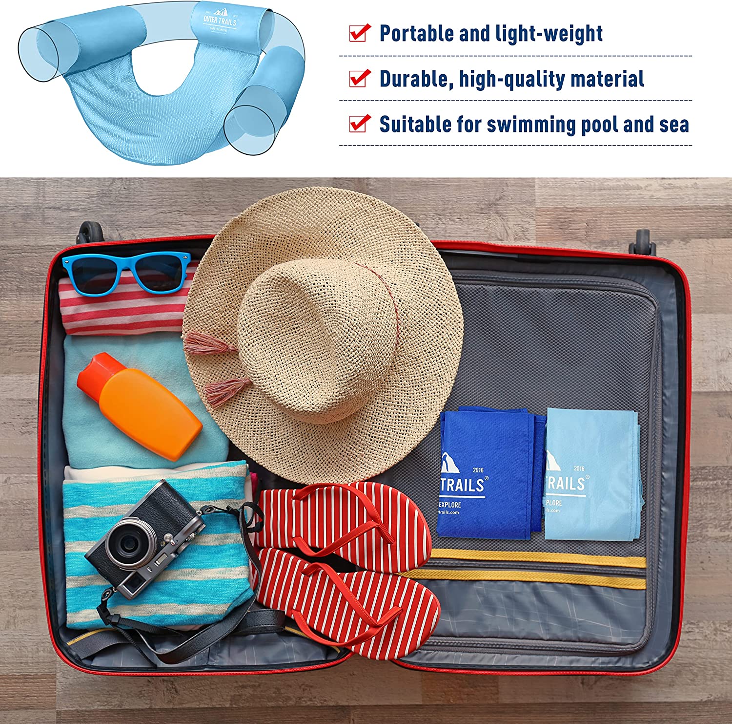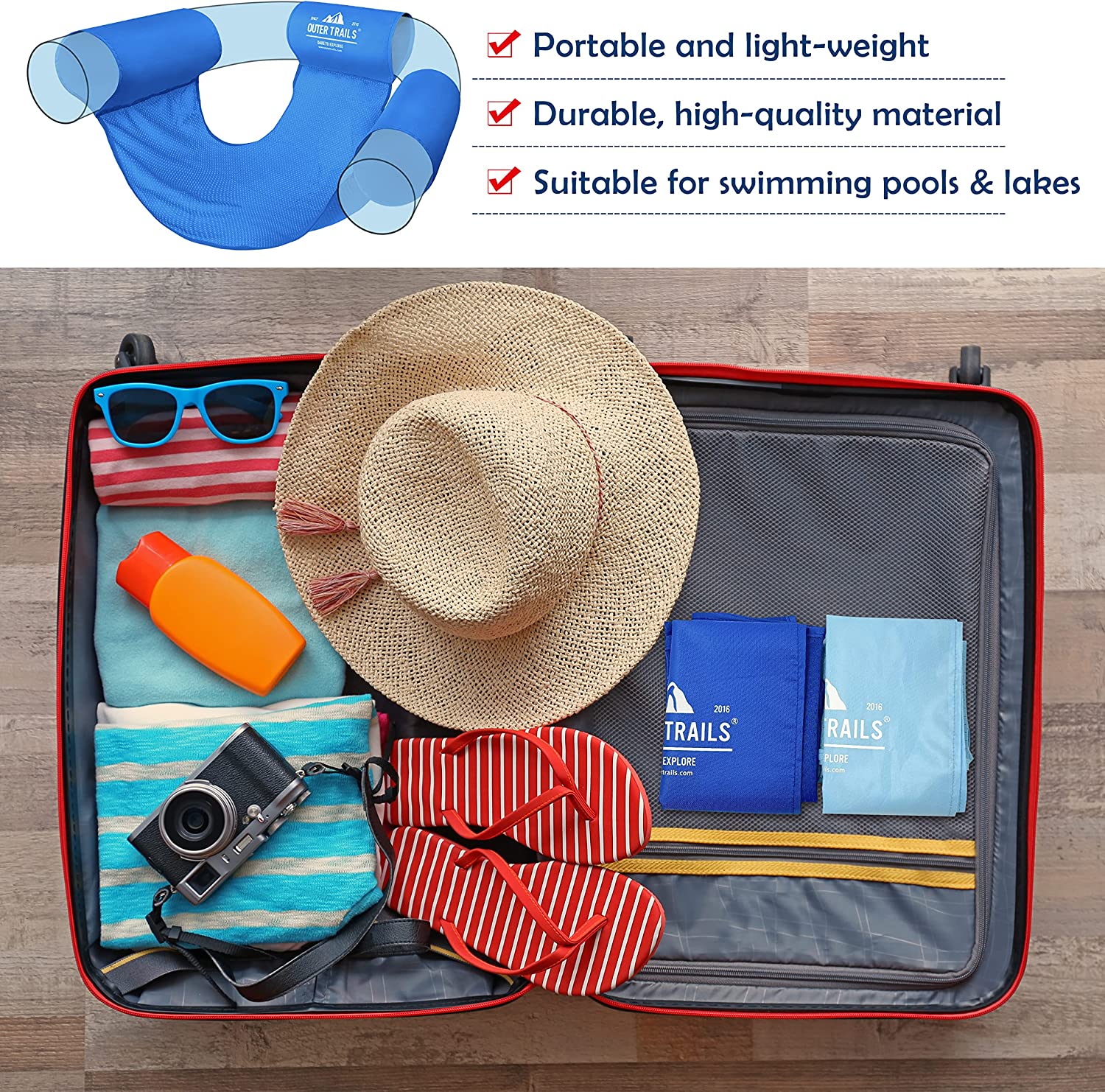 The Jumbo Pool Noodle Sling by Outer Trails is a unique and useful accessory for your summer pool parties or relaxing sessions. It securely fits over your pool noodle to provide a stable and comfortable floating experience in a pool or lake without the fear of falling off.
