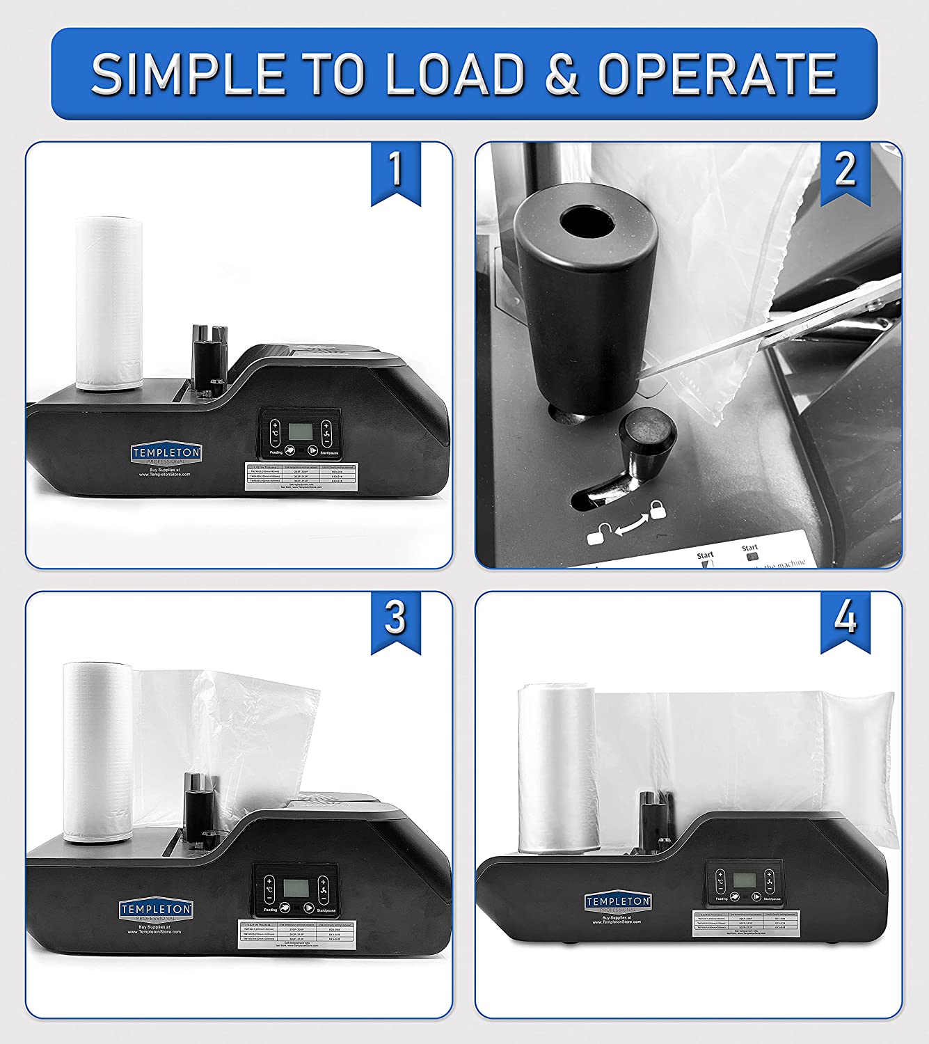 Choose multiple sized pillows for your shipments as well as machine for production needs, these air package machines can do it all! The more powerful version of the Templeton Bubble/Pillow Machines is the TM740, but the Templeton TM733 is just as efficient and compact for smaller operations. These machine will amplify production like no other and last a very long time; a Templeton staple. With quick blowing and sealing technology, you can have peace of mind that shipped products will reach their destination free of damage.