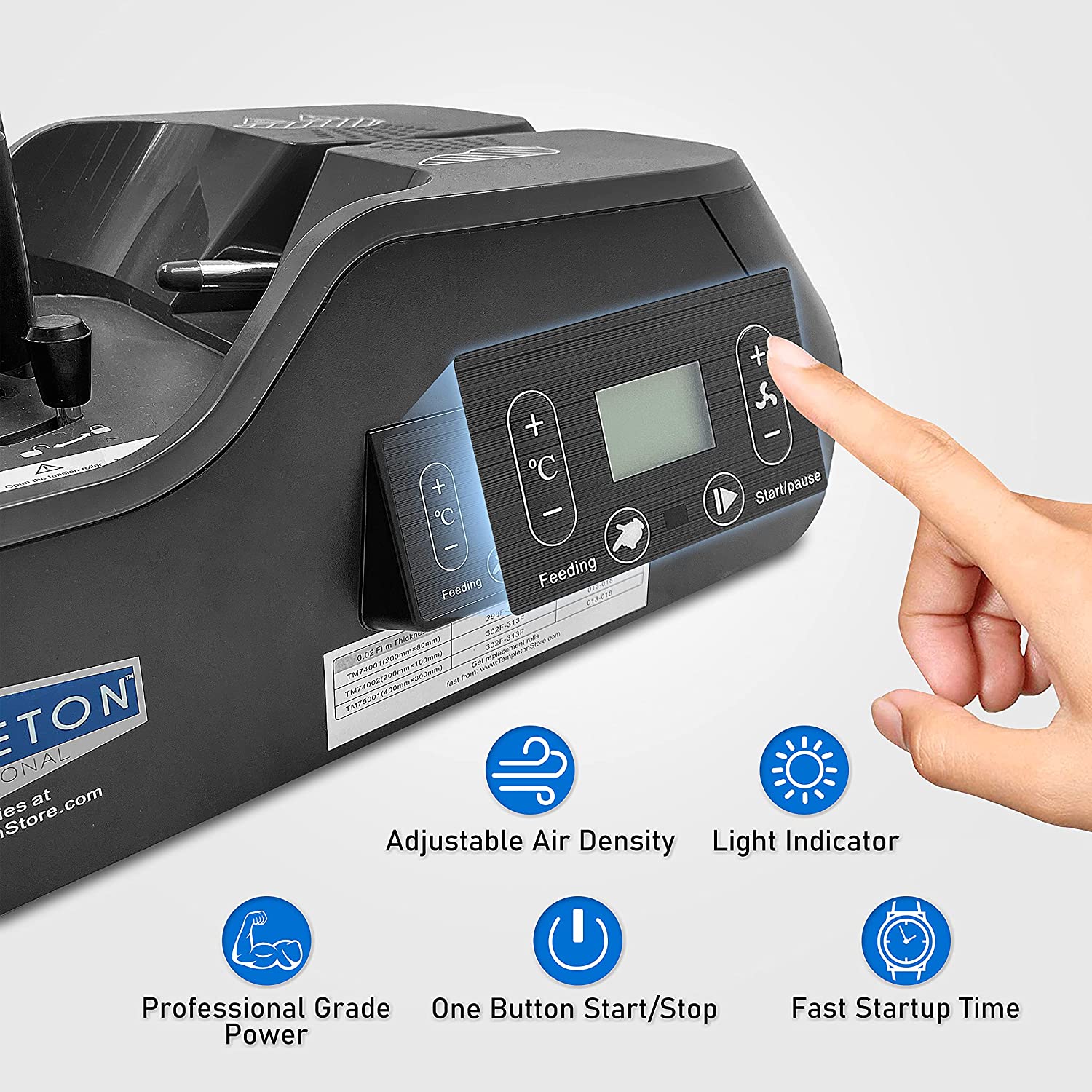 This compact bubble blowing machine can make 7 feet per minute output for up to 1.5 hours. A quick warm up makes usability and production a breeze only taking up to 2 minutes to warm up! A high output option that will make those quick seasonal sales rushes a breeze.