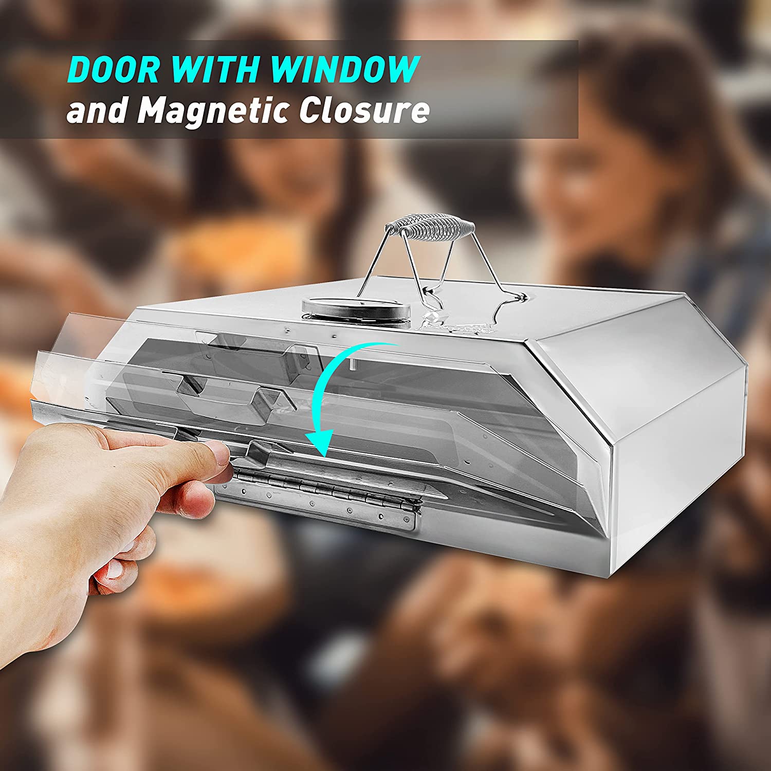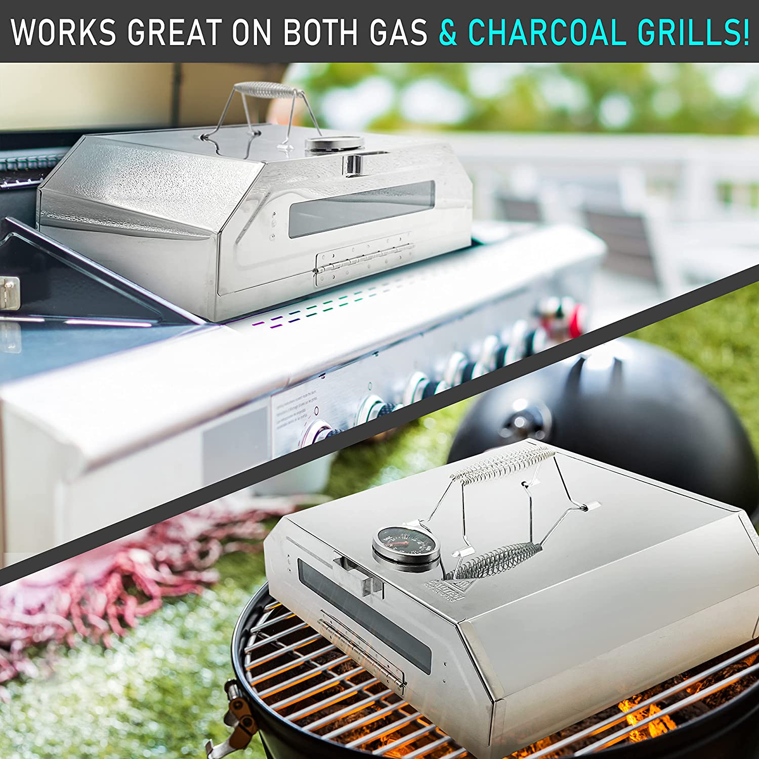 Prepare the pizza on the top grill if needed and watch through the glass window as it cooks in minutes! The pizza stone is very easy to clean with hot soapy water as well. The top grill is great for parties or gatherings with the ability pizza toppings of their choice. Quick and easy removal, the 3KB Templeton Pizza Oven comes with a parlor cutter as an added bonus that helps cut the perfect slice evenly. The perfect BBQ or Grill topper for the home pizza experience.